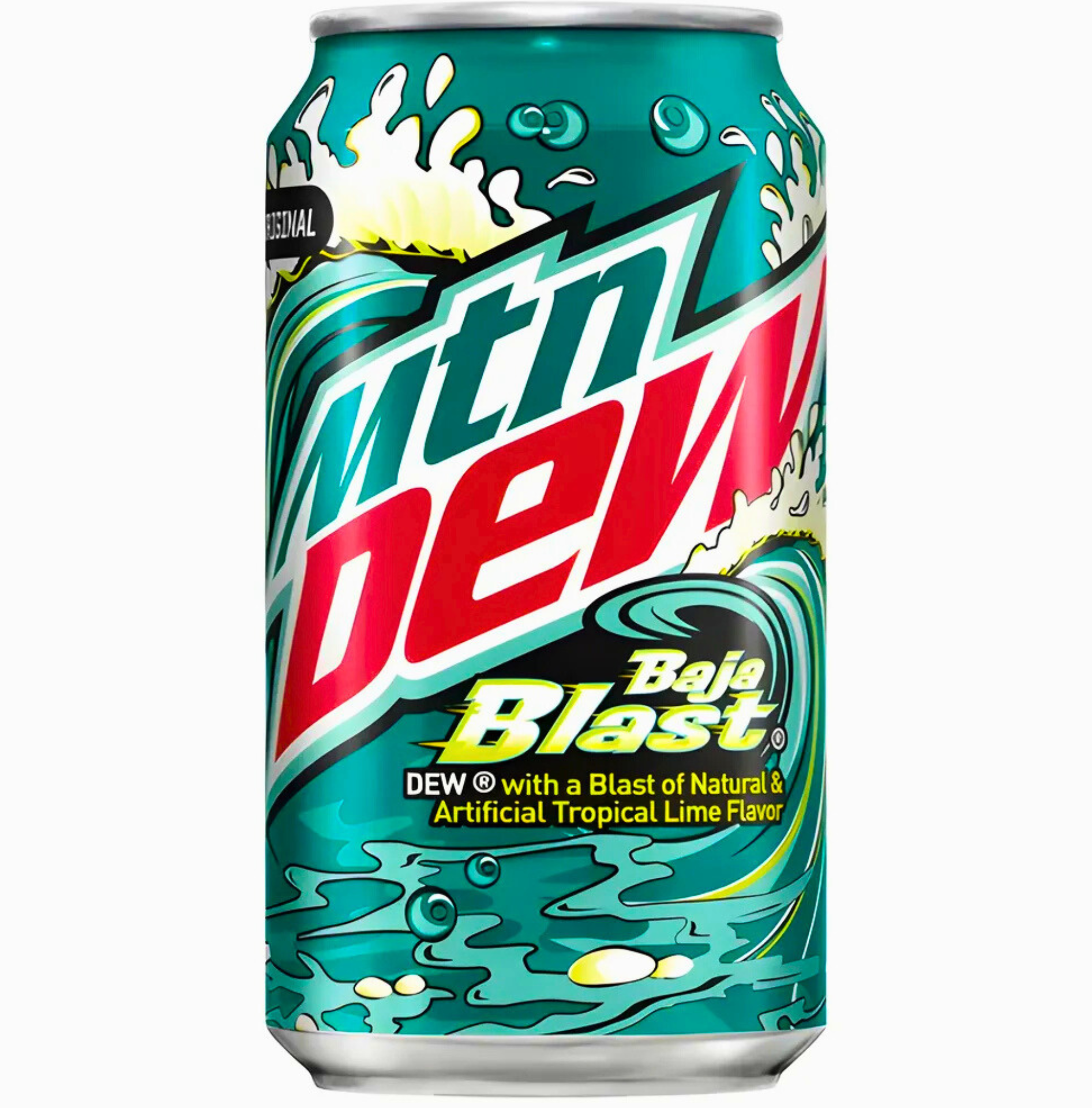 Mountain Dew BAJA BLAST Soda Kiste 24 x 355 ml USA DEW® with a blast of natural & artificial tropical lime flavor. A summer classic, available all year.