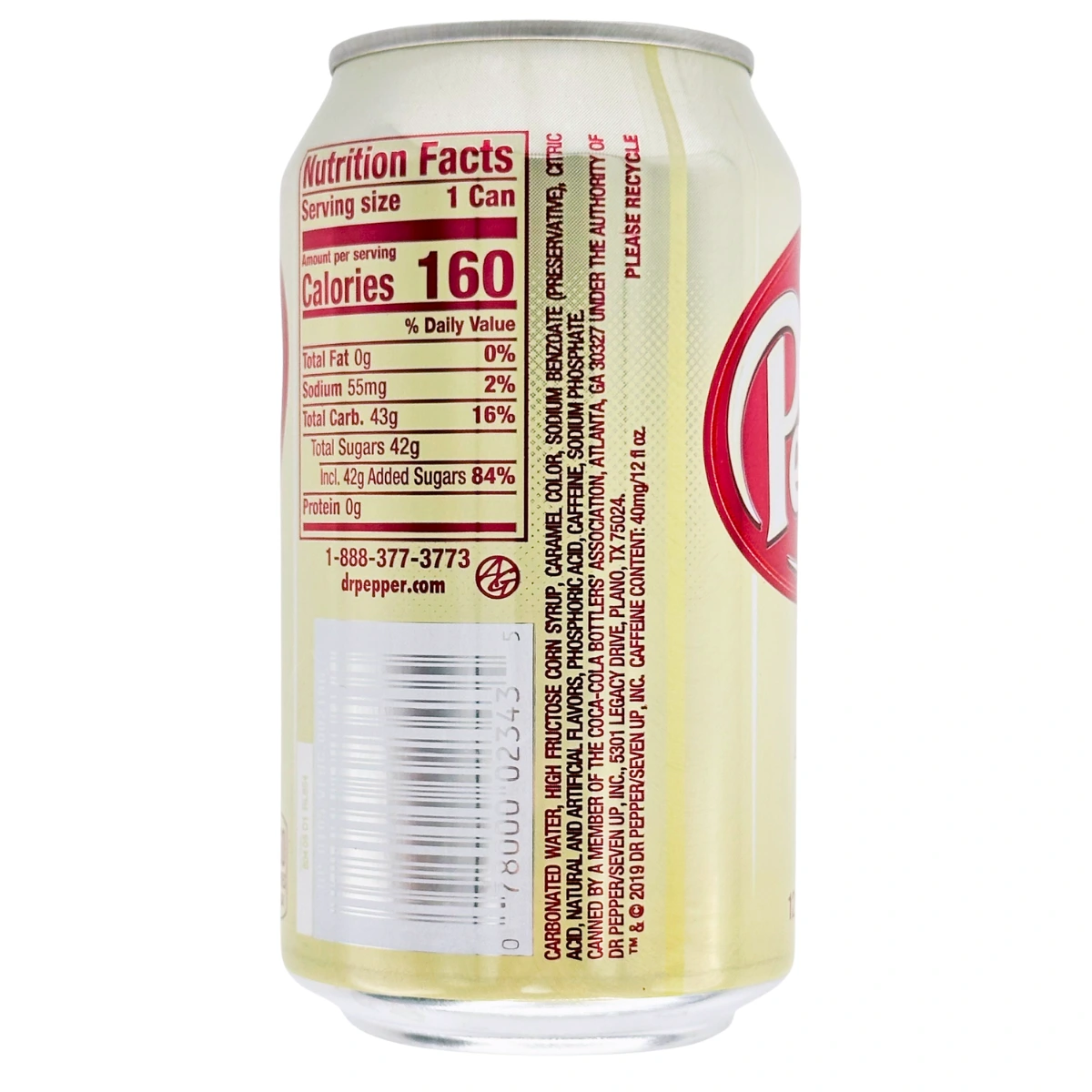 Zutaten: Wasser, Fructose-Glucose-Sirup, Karamellfarbe, natürliche und künstliche Aromen, Kohlendioxid, Natriumbenzoat, Phosphorsäure, Koffein, Natriumphosphat Koffeingehalt bei 100ml: 11,5 mg100ml enthalten: Energiewerte 42 kcal/174 kJ, Fett 0g, gesättigten Fettsäuren 0g, Kohlenhydrate 11.3g, davon Zucker 11g, Eiweiss 0g, Salz 15mg.